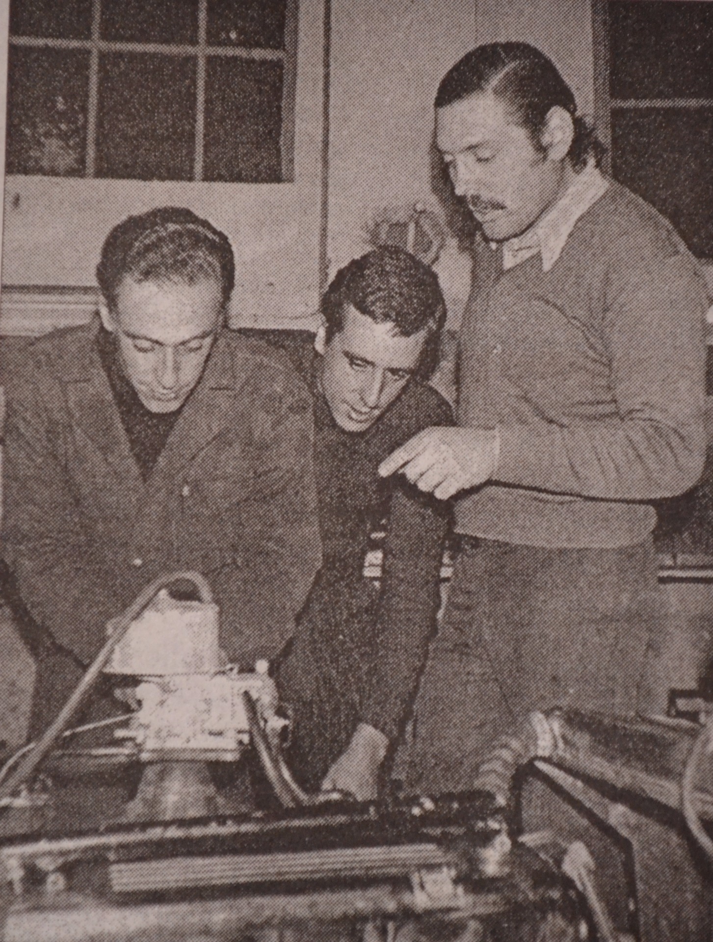 Los primos Jorge, Héctor y Juan Manuel Romera trabajando en el taller años atrás