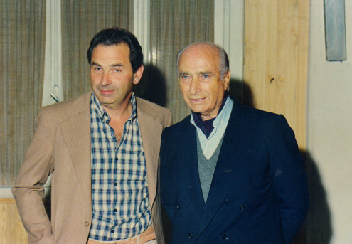 Junto con Juan Manuel Fangio, en la cena presentación de su Dodge de Turismo Carretera en el Club Racing de Balcarce de 1991
